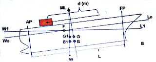 Jika F terletak didepan pertengahan panjang kapal, maka F bertanda negatif (-) dan jika F terletak dibelakang pertengahan panjang kapal, maka F bertanda positif (+).